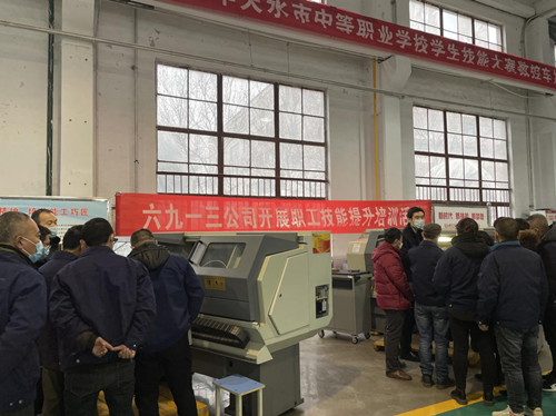 741002“工欲善其事,必先利其器?!苯?,天水六九一三電子科技有限責(zé)任公司組織對(duì)機(jī)加工專(zhuān)業(yè)人員開(kāi)展了數(shù)控車(chē)、加工中心機(jī)床操作、理論、編程軟件理論培訓(xùn)和實(shí)操培訓(xùn),此次培訓(xùn)邀請(qǐng)了甘肅機(jī)電職業(yè)技術(shù)學(xué)院張?zhí)旎?guó)家級(jí)技能大師工作室團(tuán)隊(duì)共5名高級(jí)技師進(jìn)行授課,共有50多名技術(shù)工人參加了此次培訓(xùn)。