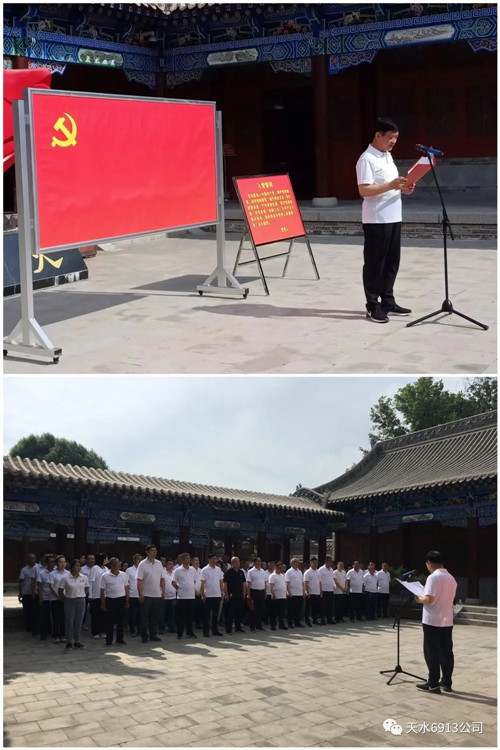7月1日,各黨支部組織所屬黨員到公司門口廣場(chǎng),面對(duì)黨旗重溫入黨誓詞,通過重溫入黨誓詞來回顧和牢記我們每個(gè)黨員入黨時(shí)的莊嚴(yán)承諾,通過重溫入黨誓詞,時(shí)刻提醒自己所肩負(fù)的神圣使命和責(zé)任,不斷強(qiáng)化每個(gè)黨員對(duì)黨的忠誠及對(duì)共產(chǎn)主義事業(yè)的不懈追求。面對(duì)鮮紅的黨旗,每位黨員高舉右手,再次莊嚴(yán)宣誓?!拔抑驹讣尤胫袊伯a(chǎn)黨……隨時(shí)準(zhǔn)備為黨和人民犧牲一切,永不叛黨?!?廠區(qū)一次次的回蕩著各支部黨員堅(jiān)定而有力的聲音,鏗鏘恢宏的誓詞,強(qiáng)烈震撼著在場(chǎng)的每一位黨員,一字一句,神圣而豪邁,體現(xiàn)了公司每位黨員堅(jiān)定的政治信念和對(duì)中國共產(chǎn)黨的無限忠誠。