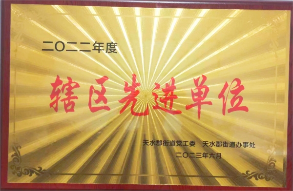 6月29日,在天水郡黨工委、天水郡街道辦事處召開的2022年度表彰會(huì)上,我公司被評(píng)為2022年度“轄區(qū)先進(jìn)單位”。