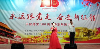 6月17日,公司排練了六人詩(shī)歌朗誦《黨啊,我為你自豪》參加了甘肅省國(guó)防系統(tǒng)建黨百年文藝匯演暨國(guó)防工匠表彰活動(dòng)。